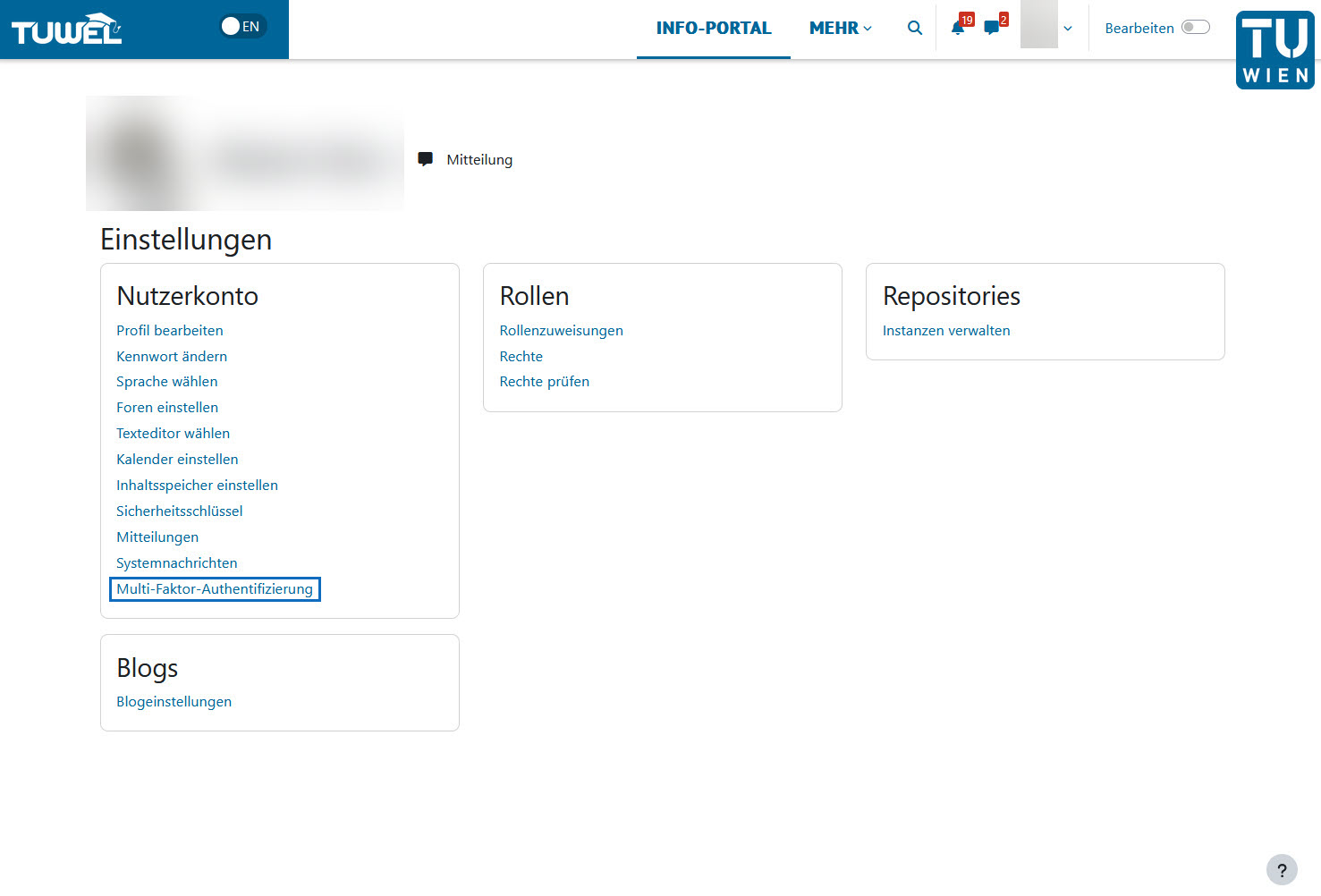 This guide shows how to set up multi-factor authentication (MFA) for manual Moodle accounts and what to bear in mind when doing so.