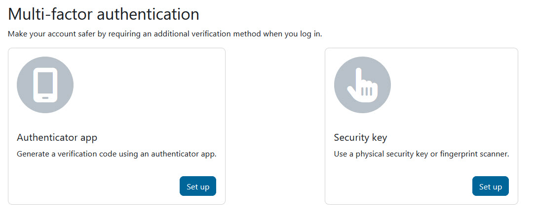This applies to you if you log in using the ‘External Login’ button. For security reasons, manual accounts using external login require two-factor authentication, such as an authenticator app or an security key.